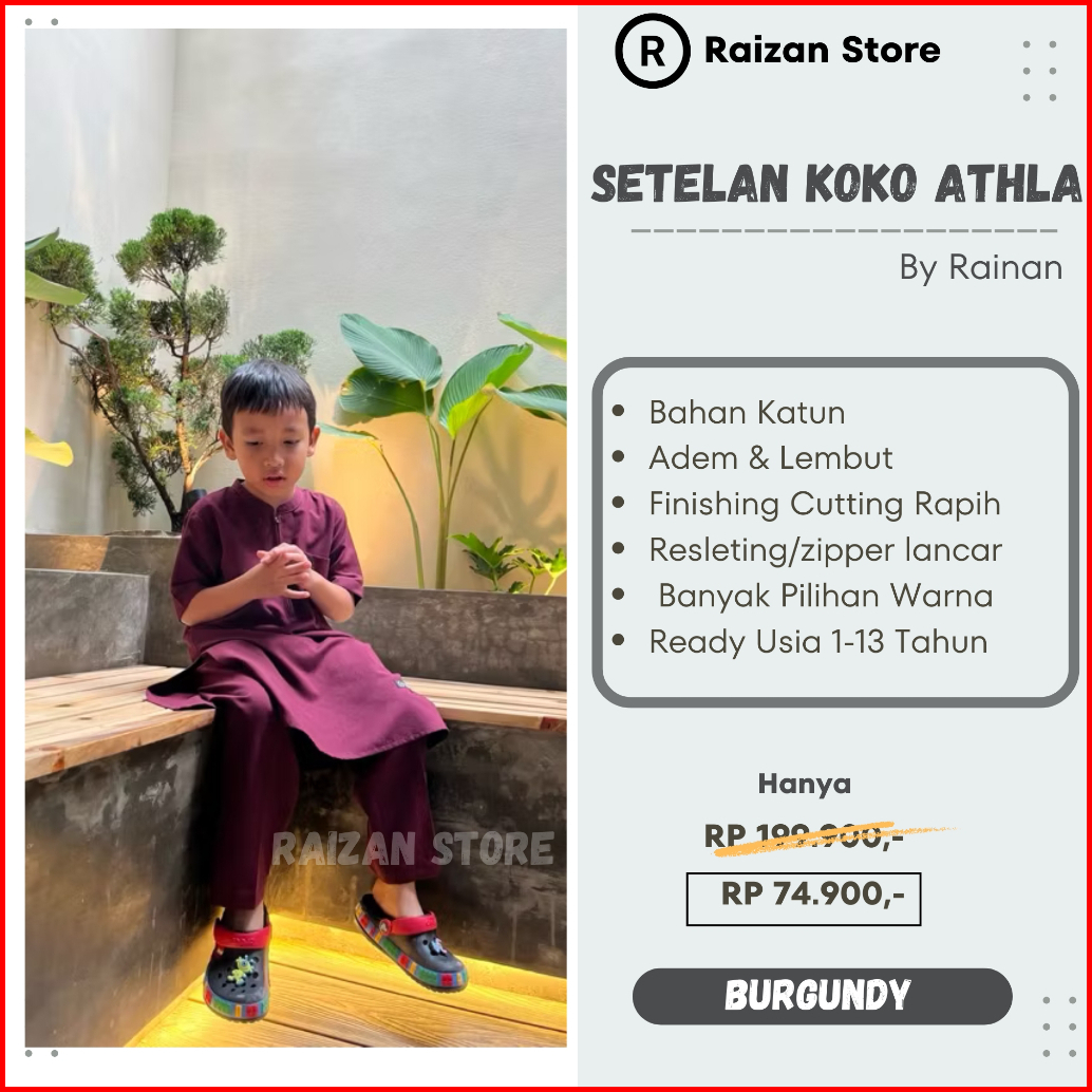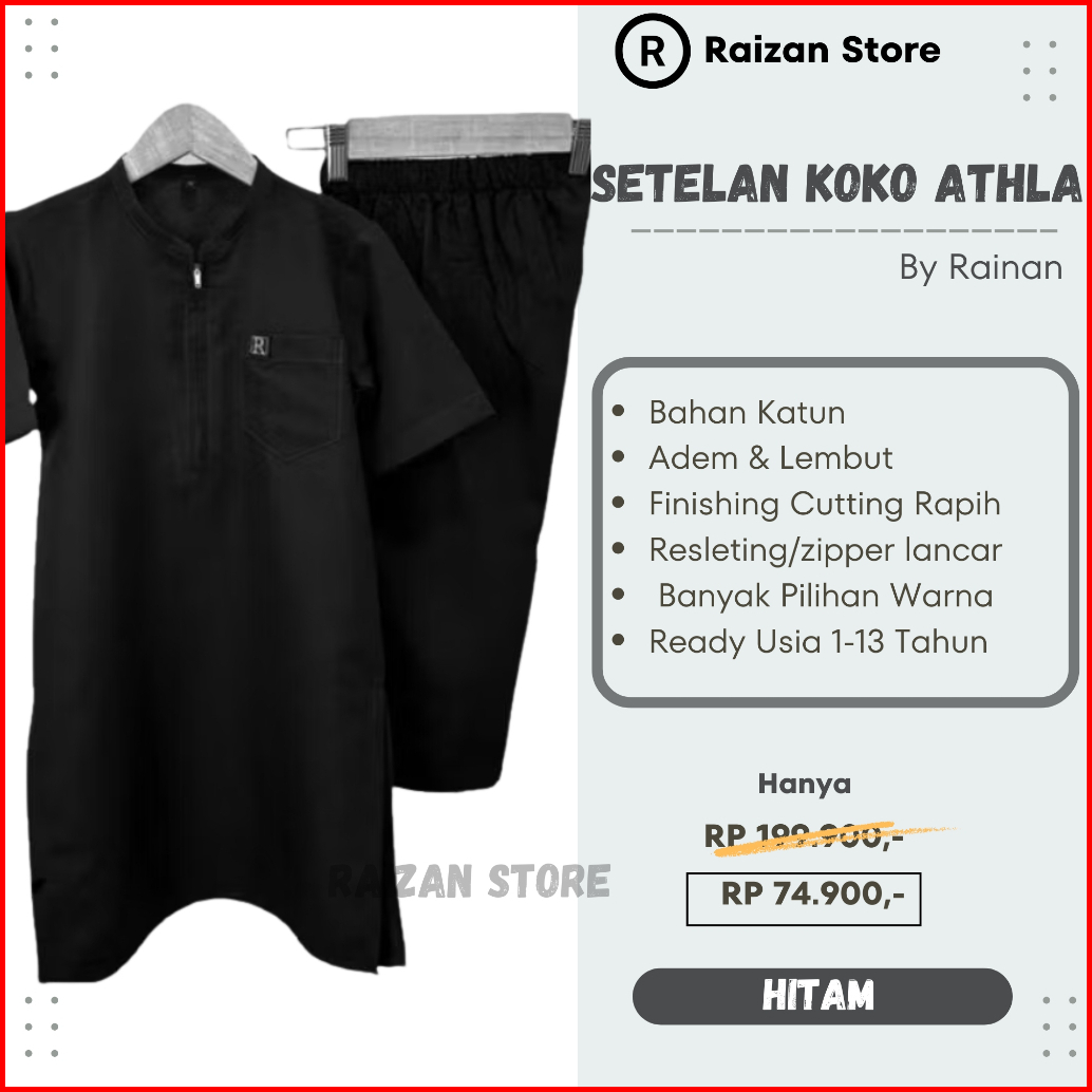Raizan Store Baju Koko Anak Laki -laki Setelan Athla By Rainan Ori Bahan Adem Lembut Usia 1-13 Tahun