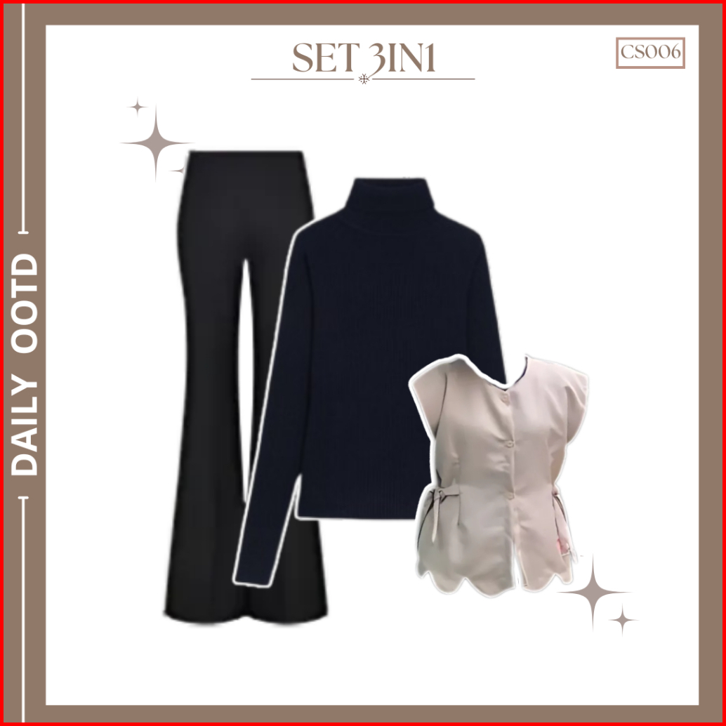 3in1 One Set Wanita Vest Cheris Inner Manset Celana Cutbray Bella Square Outfit Kekinian Cs06