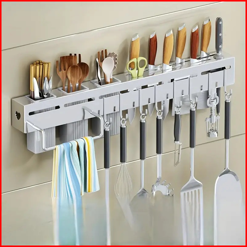 Rak Sendok Garpu Bumbu Rak Dapur Gantung Anti Karat Rak Pisau Dinding Dapur Stainless Steel Multifungsi Rak Tempel Tanpa