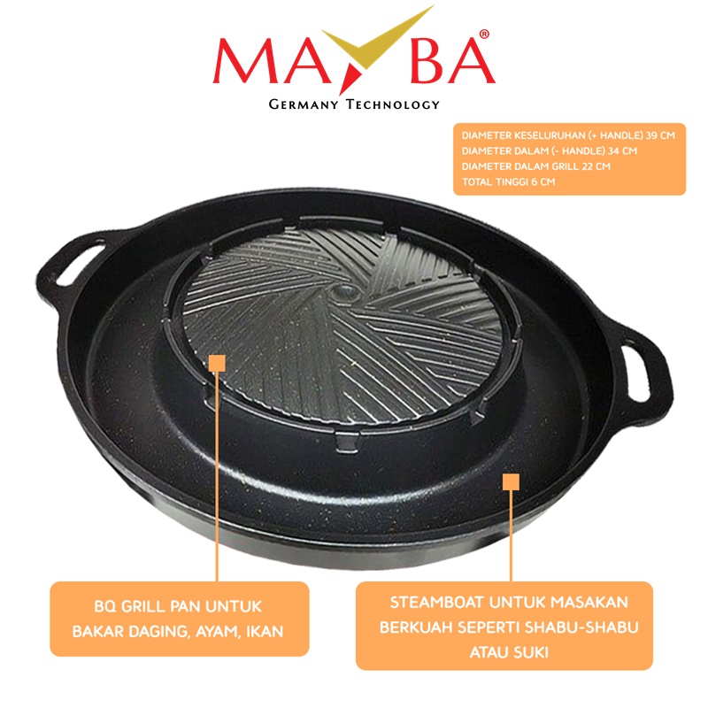 Mayba Panci Panggang Bulgogi Pan 2 In 1 Korean Shabu Shabu Pot Sukiyaki Pan Steamboat Vs. Grill Pan Alat Pemanggan