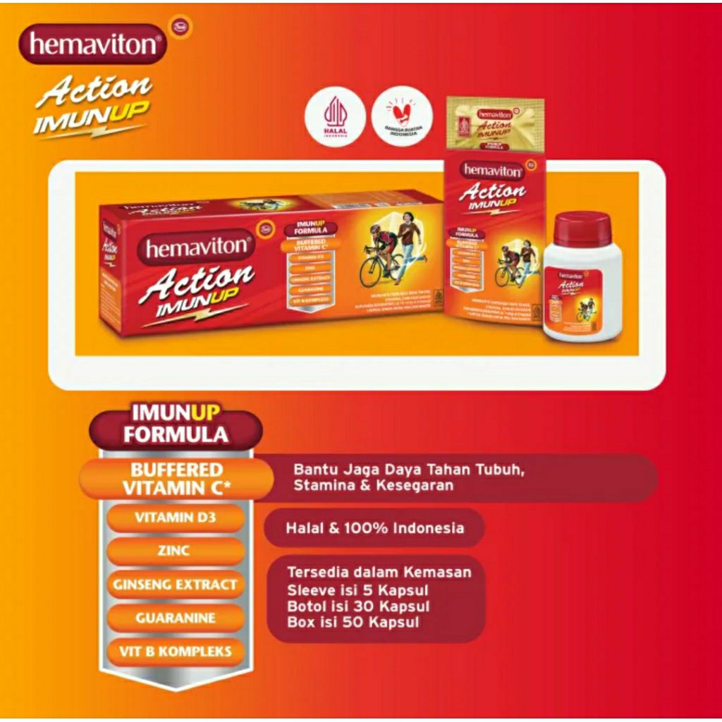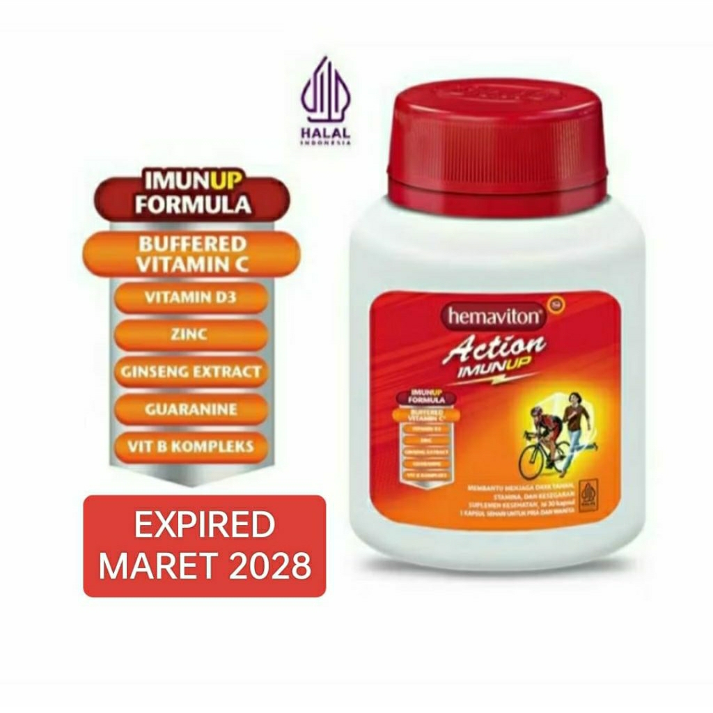 Hemaviton Action Imun Up K3M4San Botol Isi 30 kapsul Multivitamin Membantu Jaga Daya Tahan Tubuh