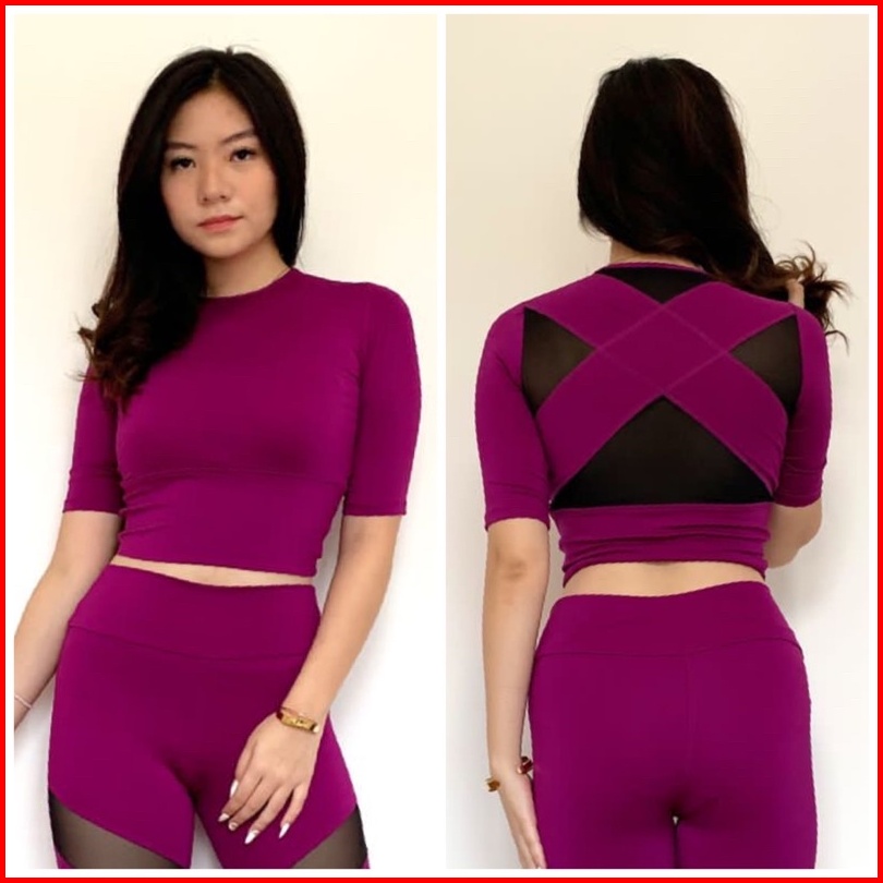 Atasan Senam Line Dance Aerobik Zumba Yoga Gym Fitness Model Crop Tile Senam