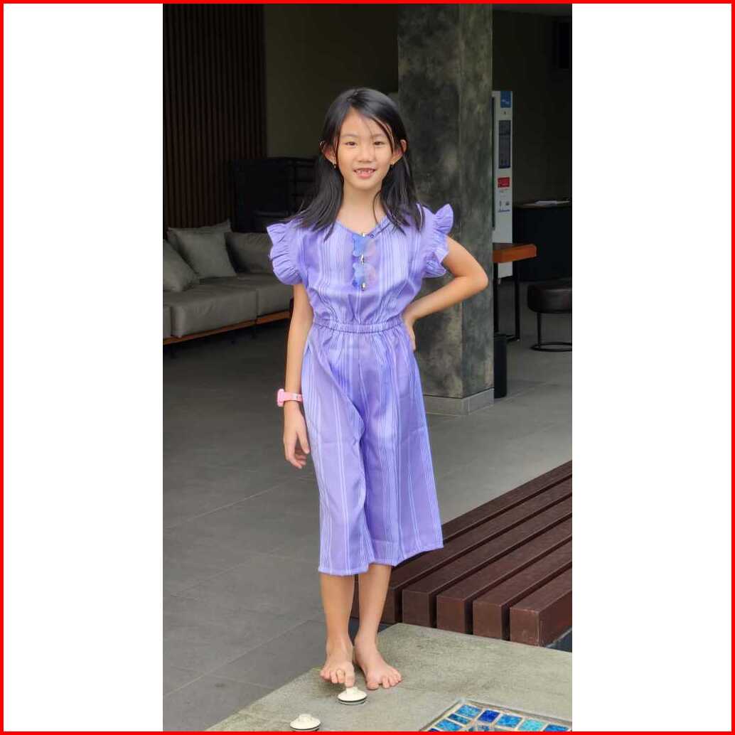 Kobe Jumpsuit Baju Anak Perempuan Jumpsuit Lengan Pendek Korean Style Fashionable Trendy Lengan Ruffle Motif Garis Usia