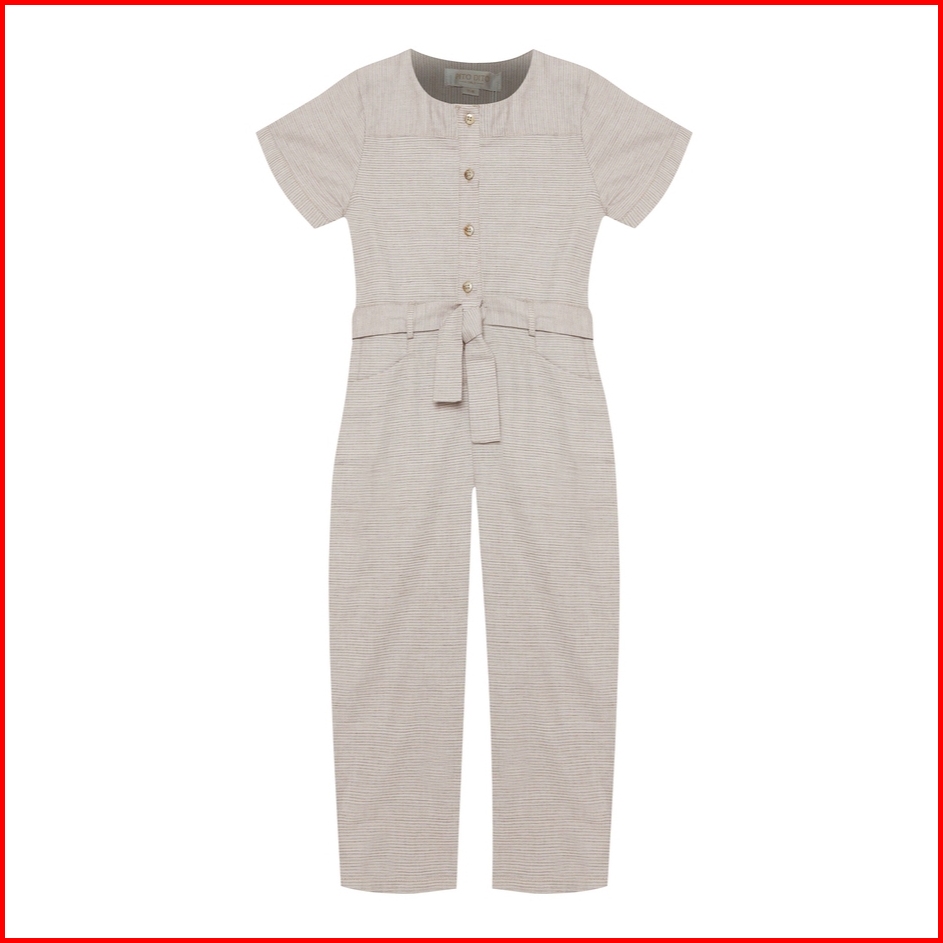 Pito Dito Girl Kinnalia Jumpsuit Anak Perempuan Motif Tekstur Garis Warna Beige