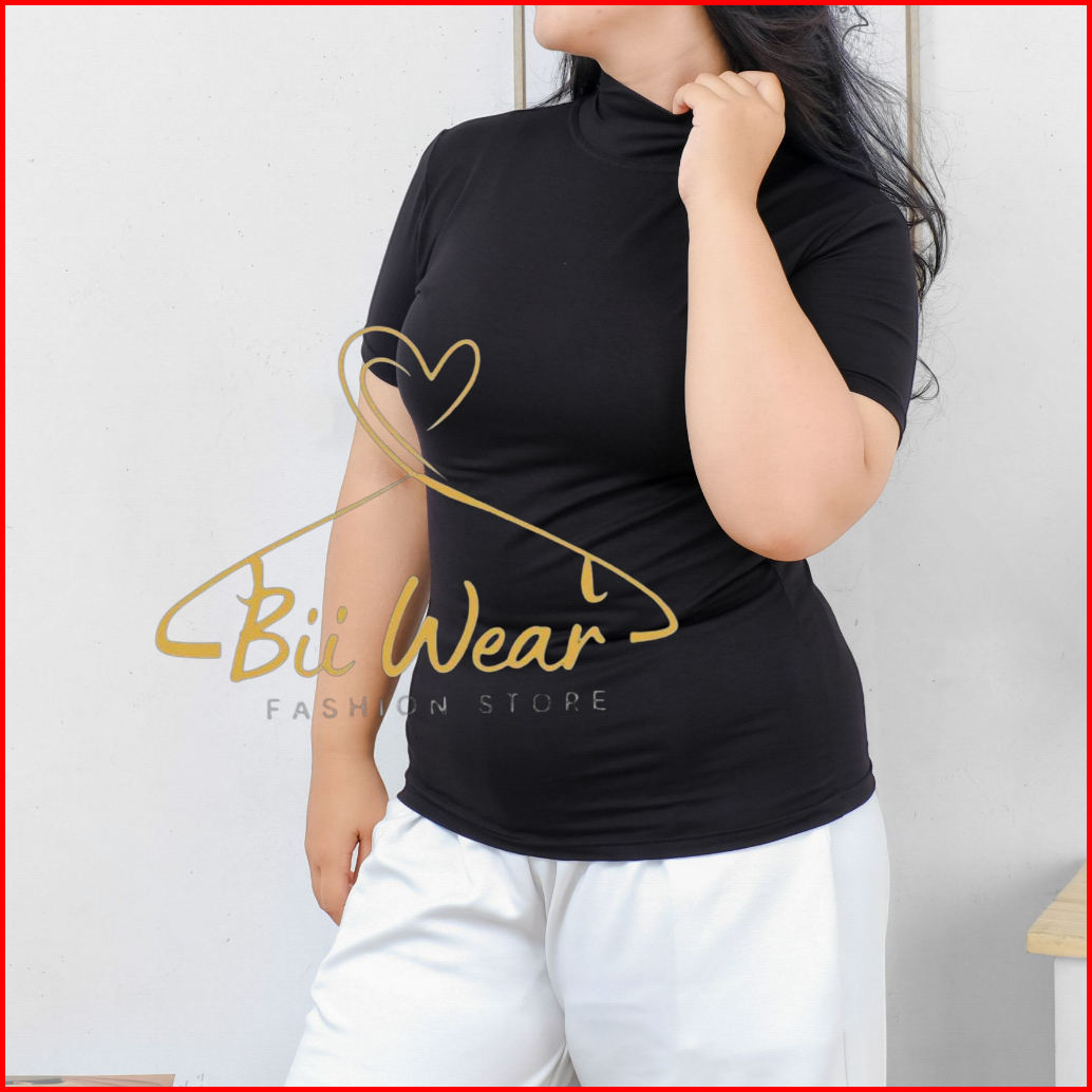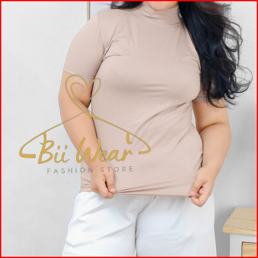 Manset Baju Kaos Turtleneck Lengan Pendek Jumbo Spandek Rayon Soft