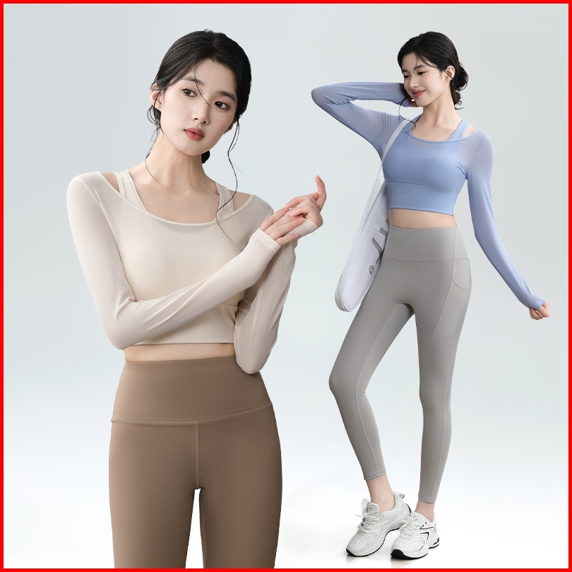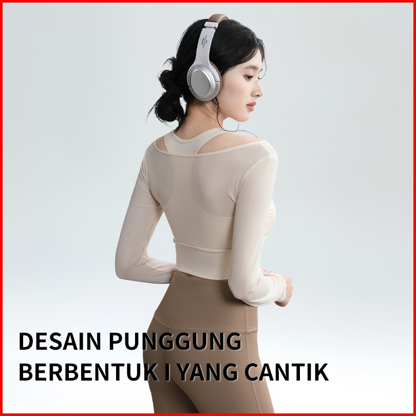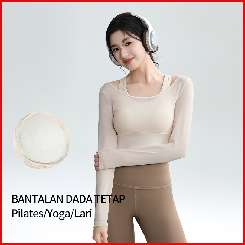 Atasan Crop Olahraga Wanita Lengan Panjang Gym Senam Yoga Fitness Pilates Poundfit Padel Tenis Baju Sport Cewek Terbaru