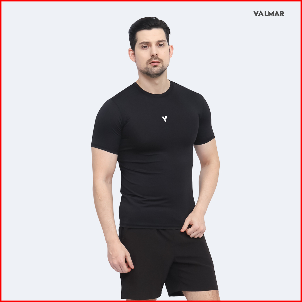 Valmar Sportwear - Baselayer Manset Pria Basic Olahraga Lengan Pendek 4 Way Stretch Quick Dry