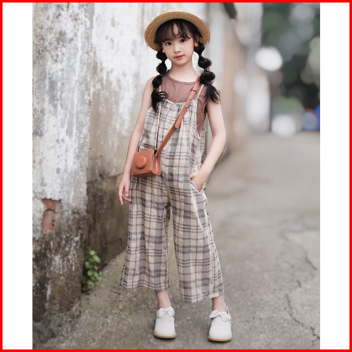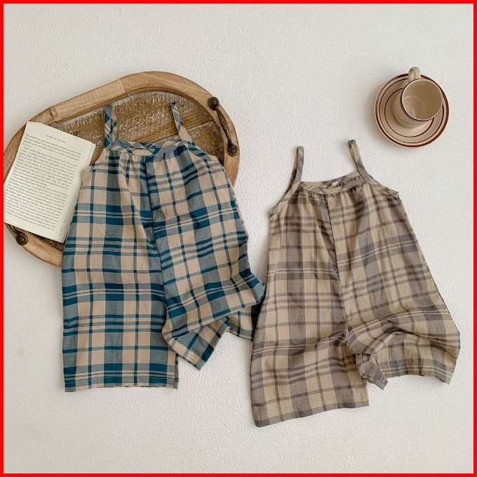 Acadiakids - Jumpsuit Anak Perempuan Fantine Motif Tartan Tanpa Lengan Premium Terlaris Terbaru