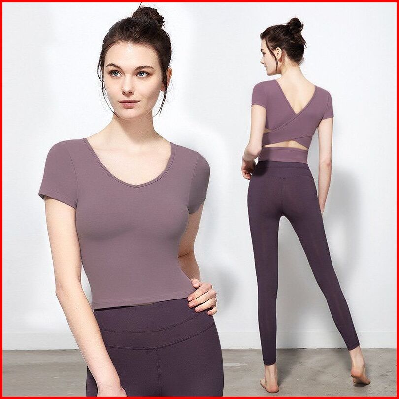 Baju Senam Wanita Atasan Sport Yoga Crop Top Lengan Pendek Bahan Stretch Nyaman Fitness Gym Pilates Outfit Ks8015