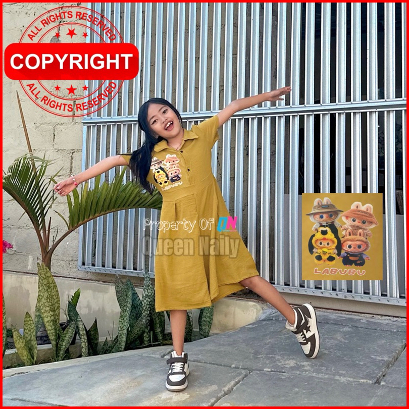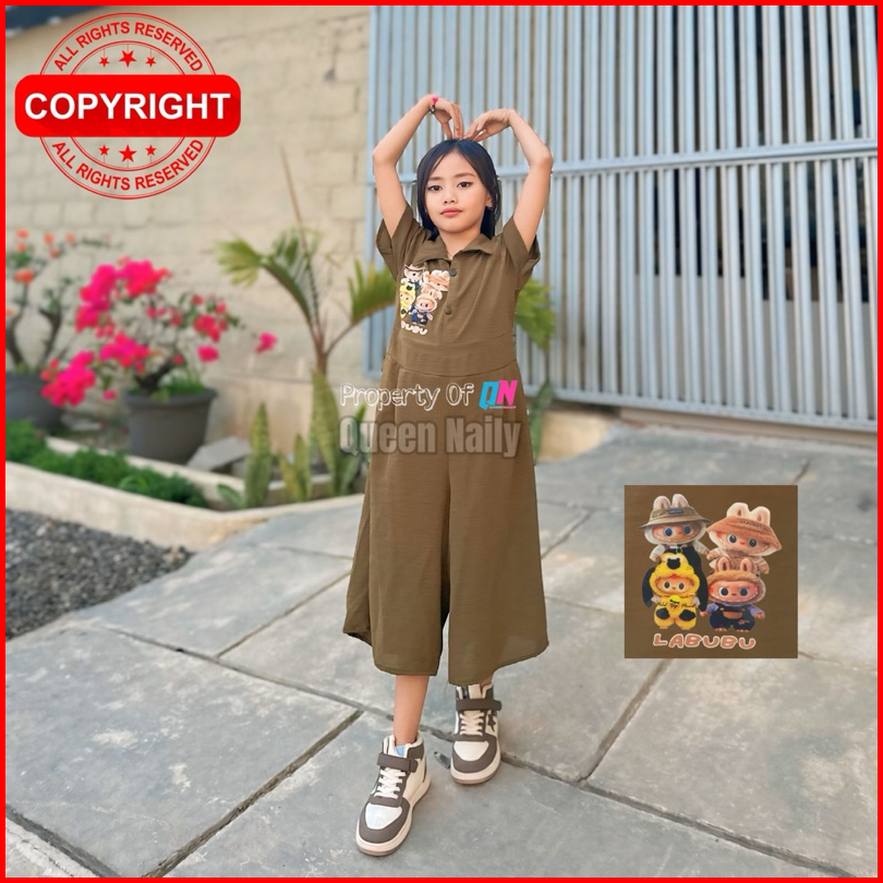Labubu Uk Jumpsuit Queen Anak 2-12 Tahun Bahan Crincle Airflow Cey