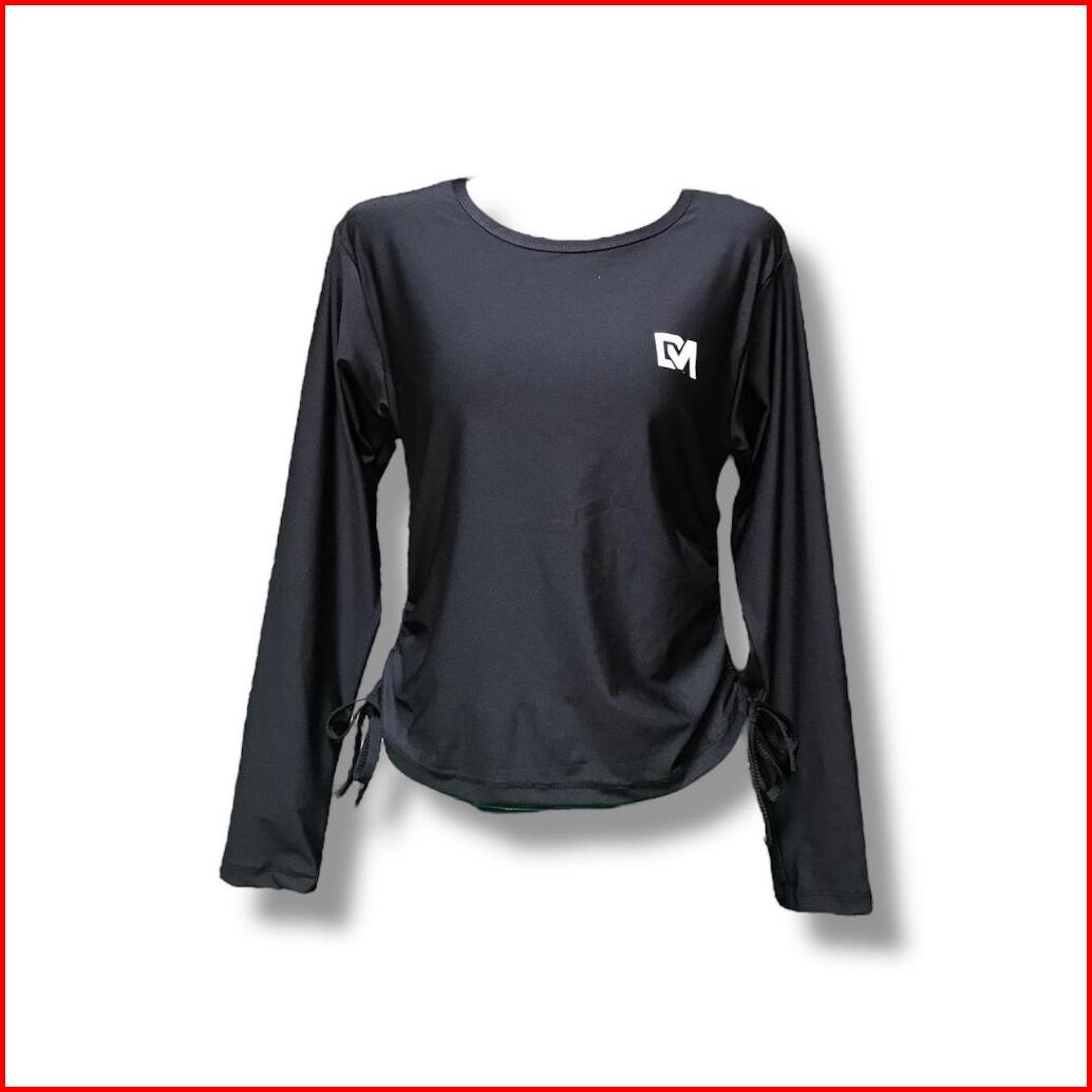 Dmove Long Sleeve Serut Samping Kerah Bulat Olahraga Wanita Indoor Outdoor Gym Lari Senam Aerobic Zumba Yoga
