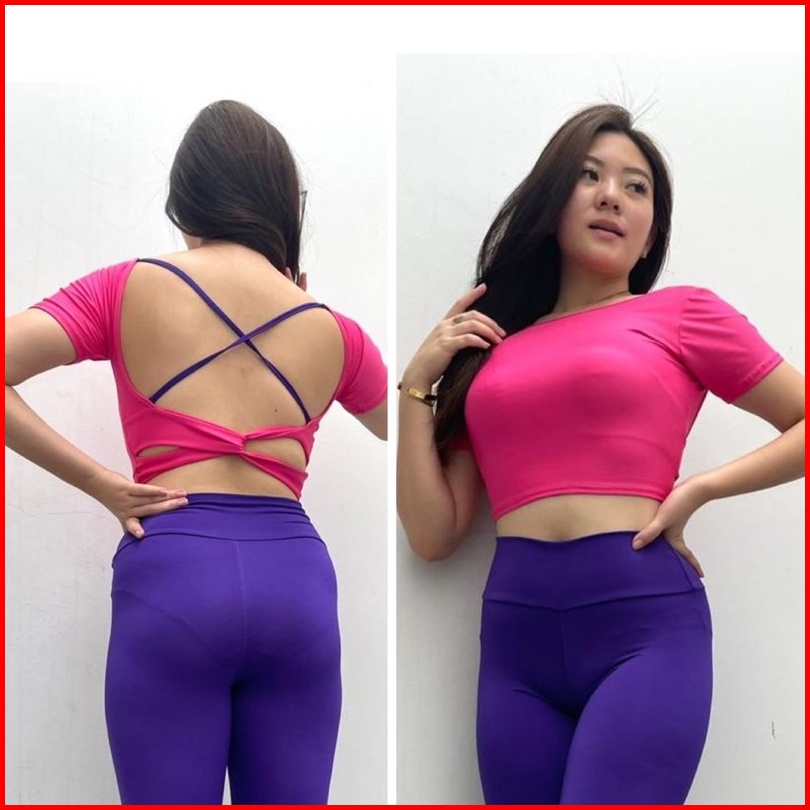 Atasan Senam Aerobik Zumba Yoga Gym Fitness Model Crop Tin Line
