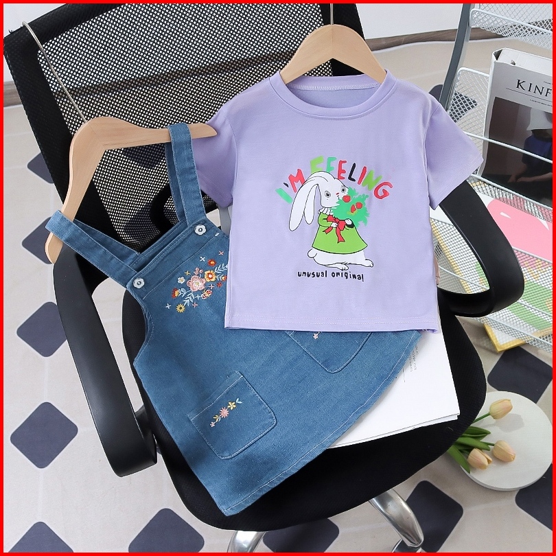 Setelan Anak Perempuan Overall Jumpsuit Motif Rabbit Usia 1-4tahun