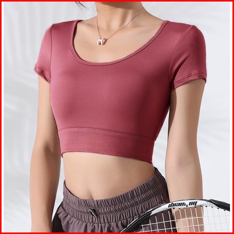 Baju Senam Olahraga Crop Gym Yoga Zumba Ada Cup Busa Atasan Wsm 533