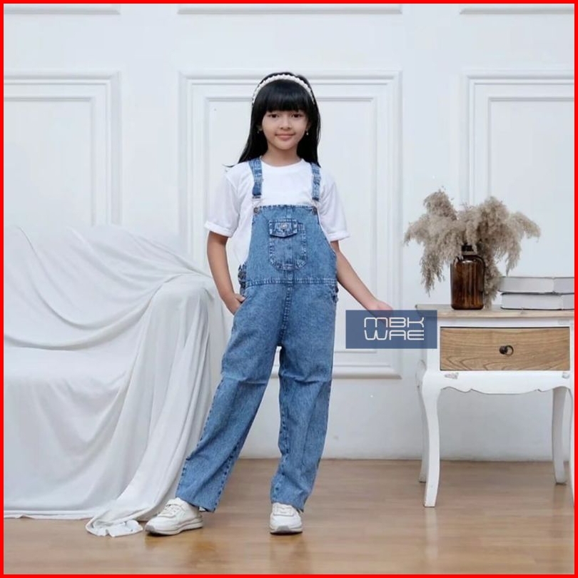 Overall Jumpsuit Jeans Anak Usia 2-13 Tahun Wanita Celana Kodok Jeans Kekinian Terbaru