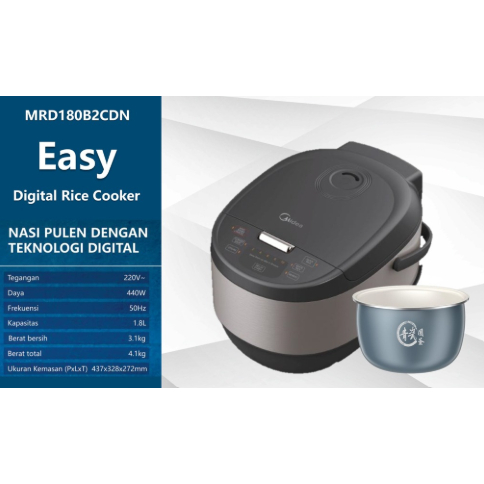 Midea Rice Cooker Digital MRD-180B2-CDN – Magic Com Smart 1.8 Liter 440 Watt Auto Menu