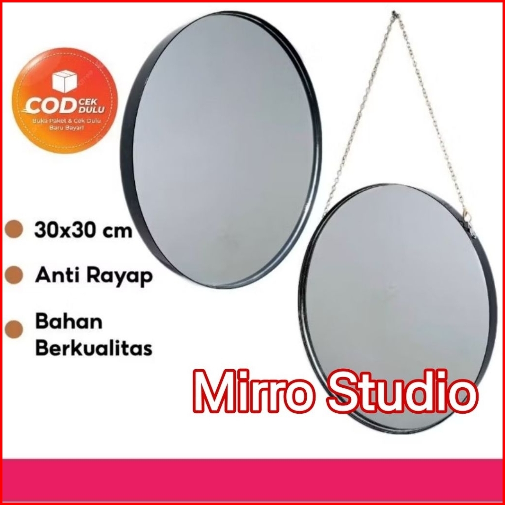 Cermin Aesthetic Cermin Bulat Cermin Gantung Cermin Tempel Frame Hitam