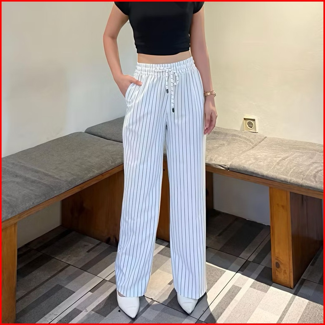 Everyday Pants - Stripe Pants Bangkok Celana Panjang Wanita Baggy Kantor Kuliah Motif Garis Kulot Pinstripe - Celana For