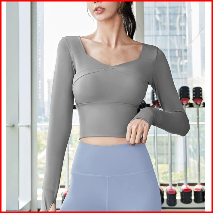 Oxy Long Sleeve Tight Athletic Top With Bra Pad Atasan Pendek Atletik Ketat Lengan Panjang Wanita 4401 S M L