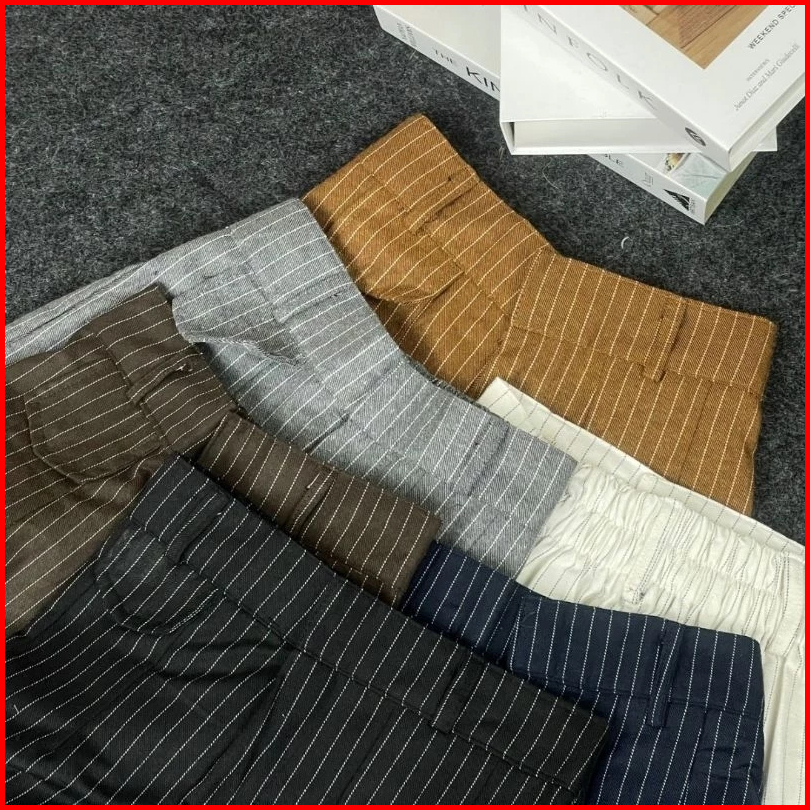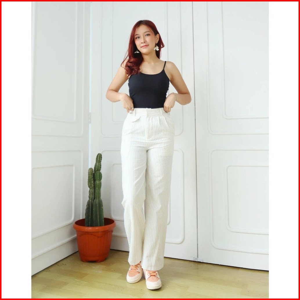 Oro Pants Stripe Bangkok - Celana Anti Kusut - Celana Panjang Korean Style - Celana Highwaist Wanita