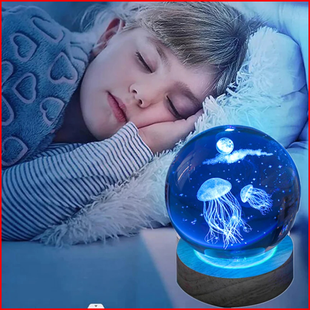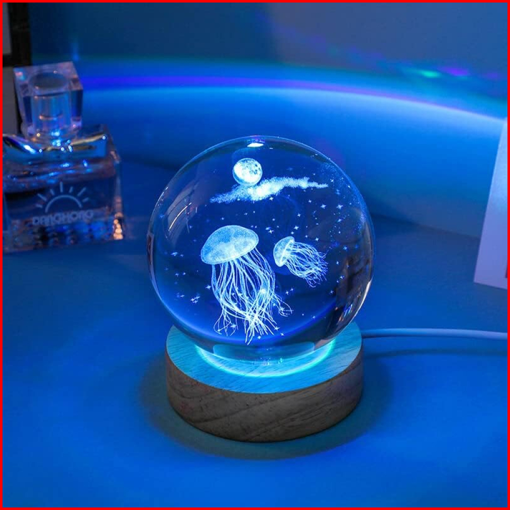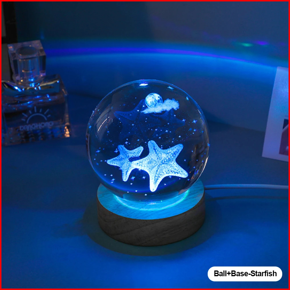 Lampu Tidur Bola Kristal 3d Rgb Usb 1.5w Starfish Jellyfish - Ls660 - Transparent