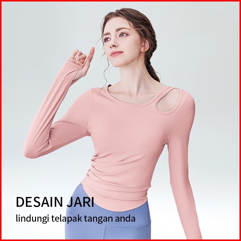 Baju Olahraga Wanita Lengan Panjang Gym Senam Fitness Yoga Pilates Running Long Sleve T-shirt Sport Cewek Terbaru Yf119
