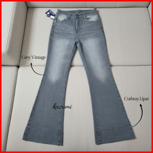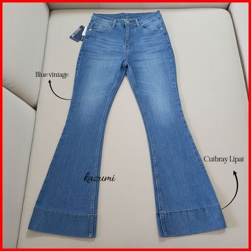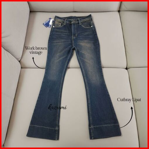 Kazumi - Cutbray Jeans Janita Higwaist Lipat Kaki Besar Jeans Strech Wanita Bawah Lebar