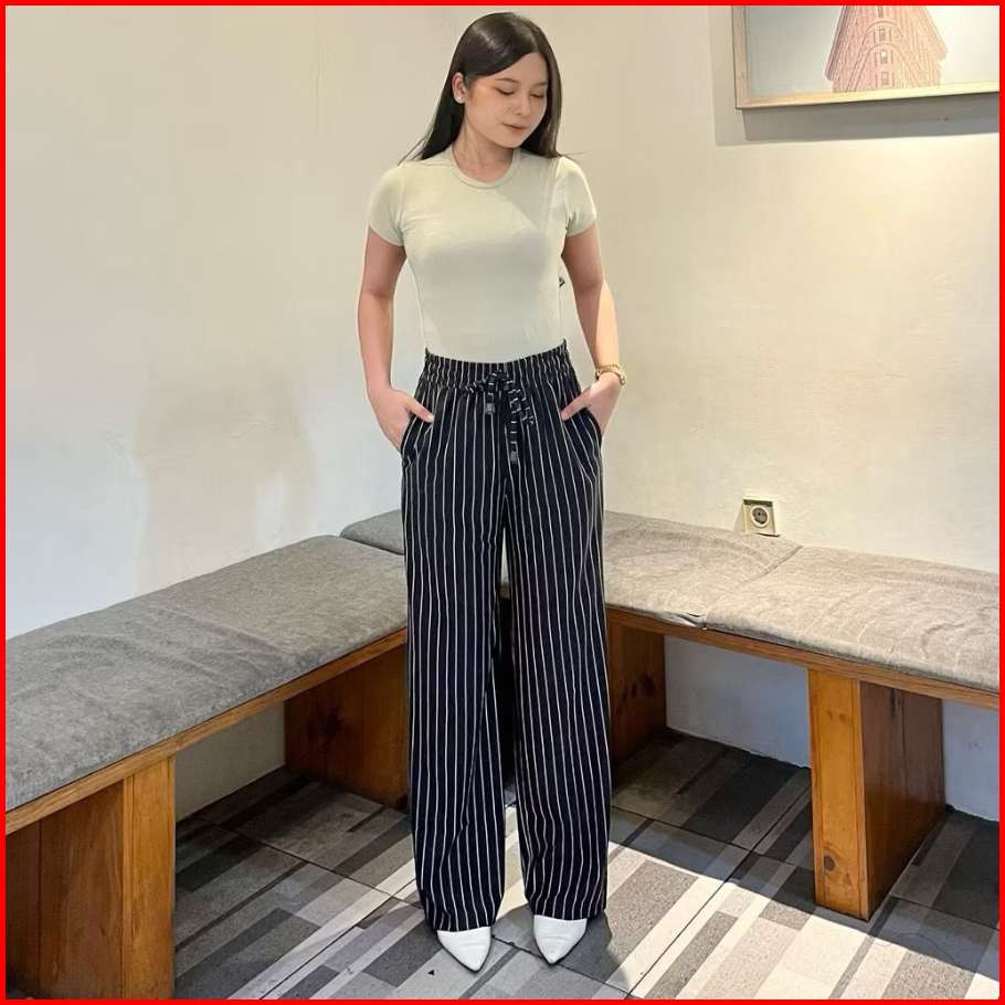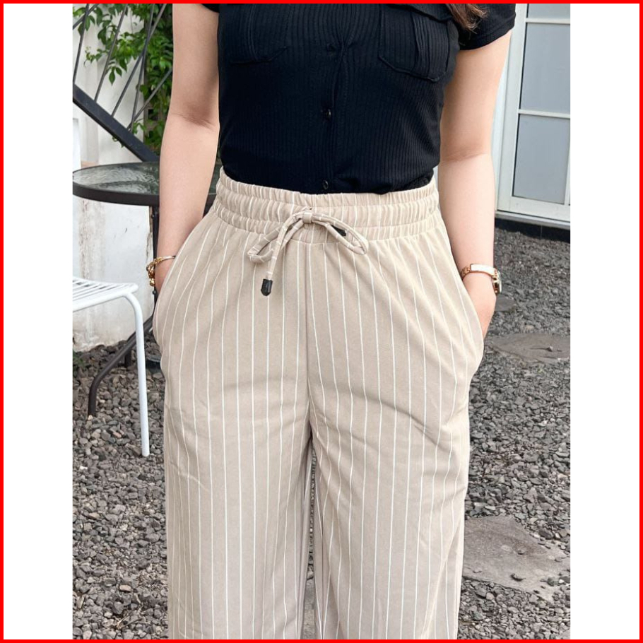 Everyday Pants - Stripe Pants Bangkok - Celana Panjang Wanita Baggy Kantor Kuliah Motif Garis Kulot Pinstripe - Celana F
