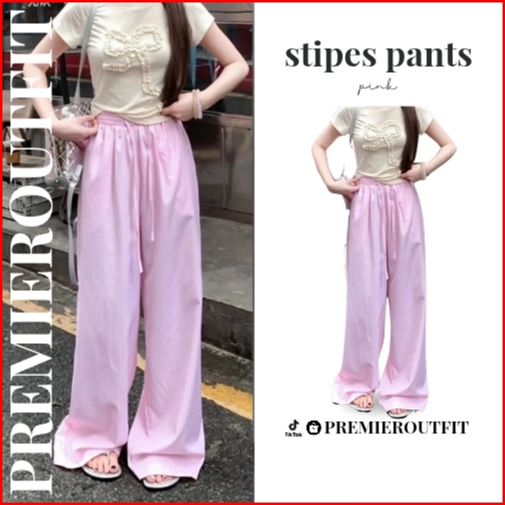 Premier Outfit-everyday Pants Salur Wanita Kulot Stripe Pants- Celana Salur Wanita Panjang