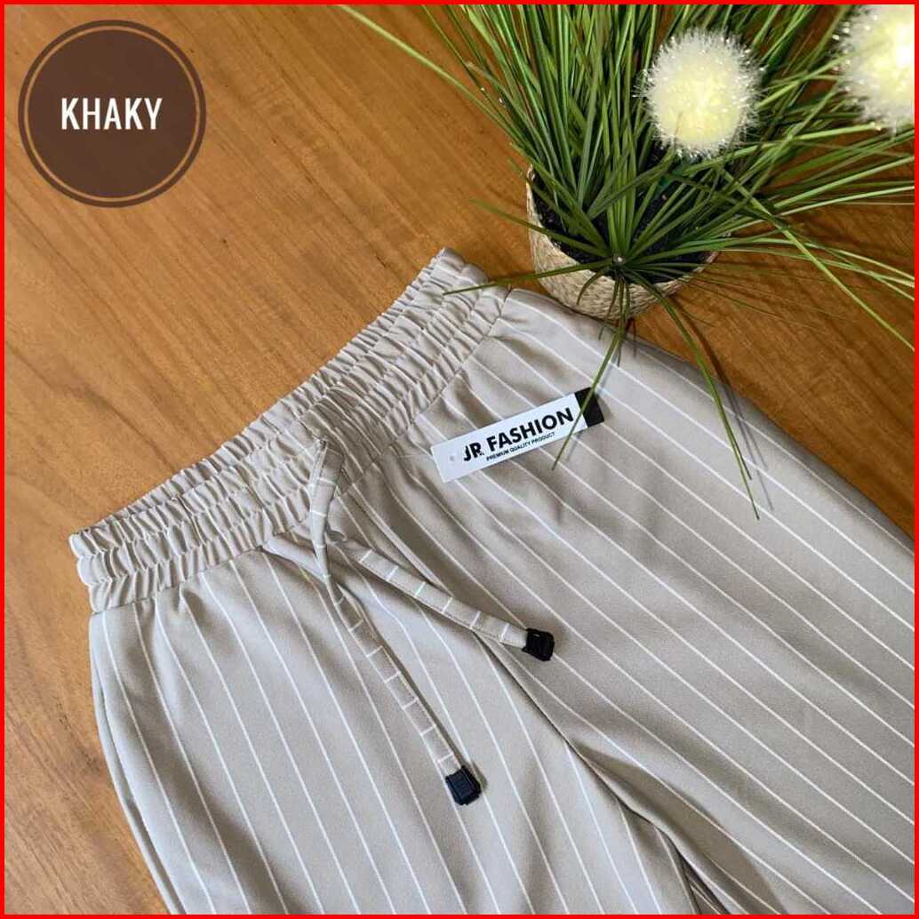 Stripe Pants Bangkok - Celana Panjang Wanita Baggy Kantor Kuliah Motif Garis Kulot Pinstripe