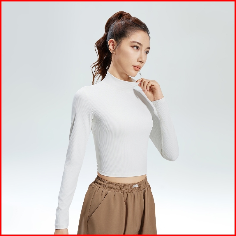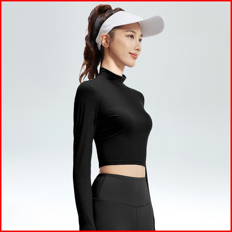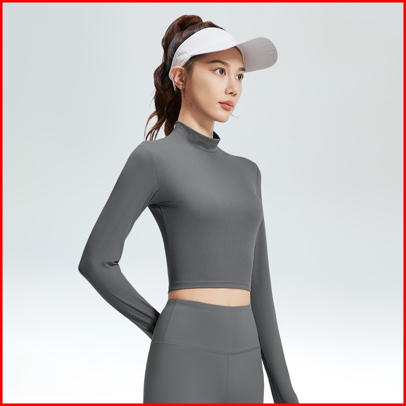 Baju Olahraga Wanita Lengan Panjang Crop Manset Sport Gym Running Poundfit Senam Pilates Yf121