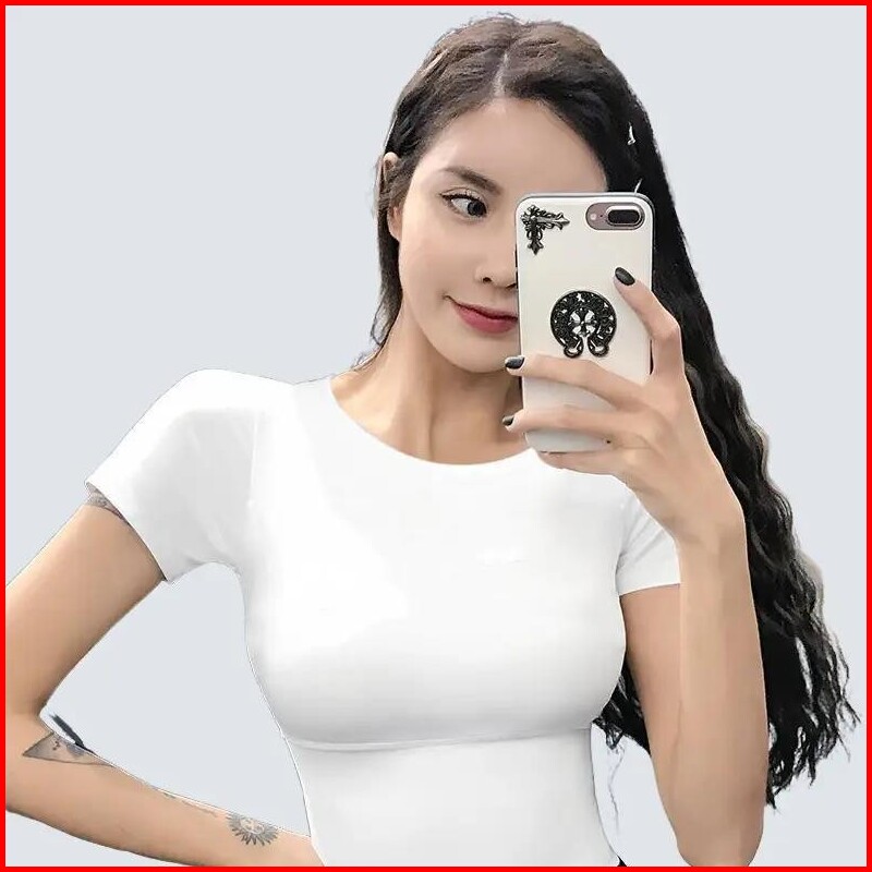Baju Olahraga Wanita Kaos Crop Top Sport Yoga Gym Fitnes Stretch Quick Dry Atasan Senam Lengan Pendek Kekinian Slim Fit