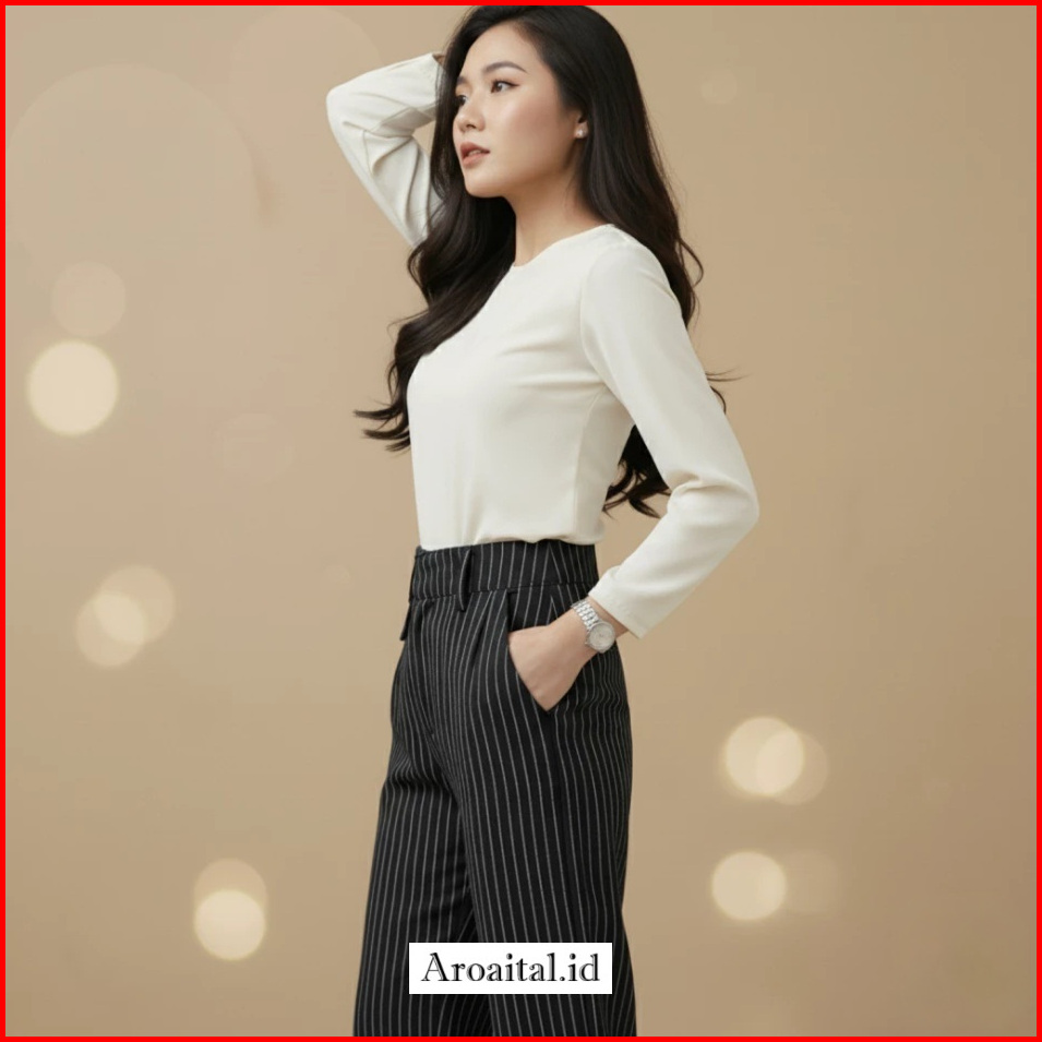 Aroaital.id Oro Pants Stripe - By Outfit Loose Stripe Pants For Women Anti-wrinkle Korean Style