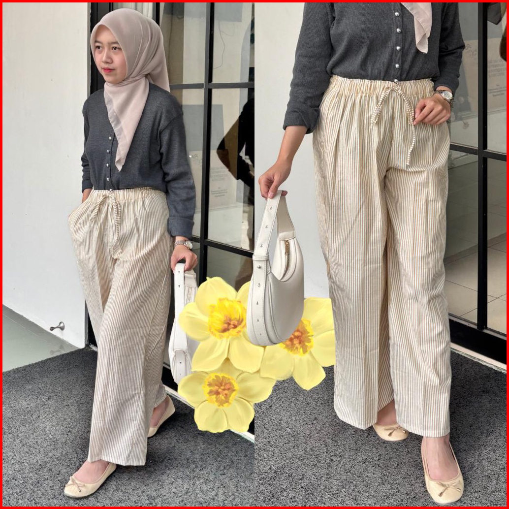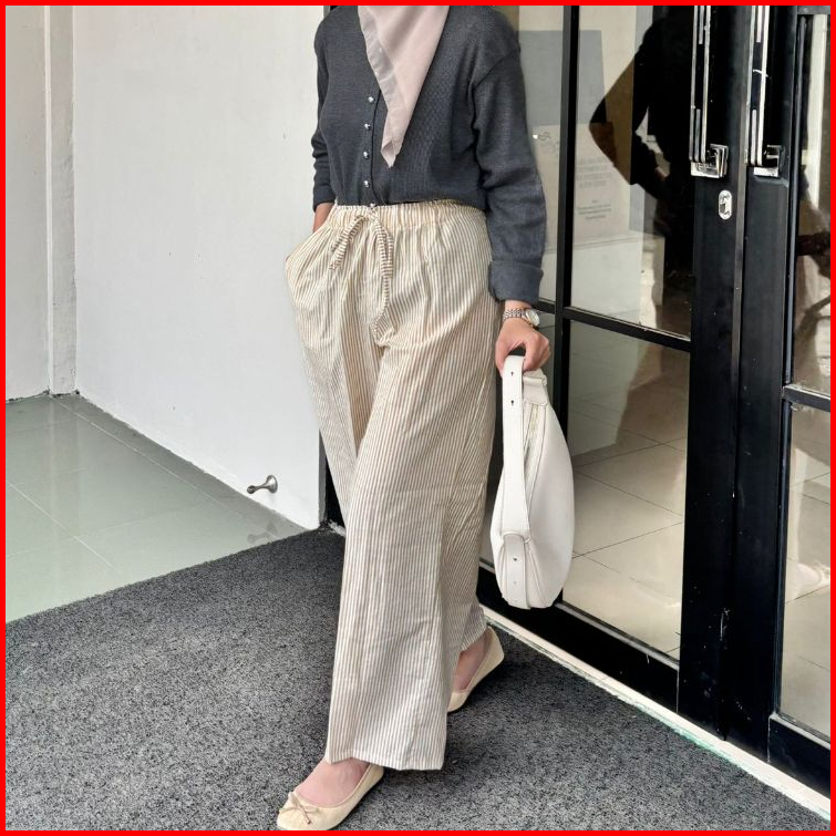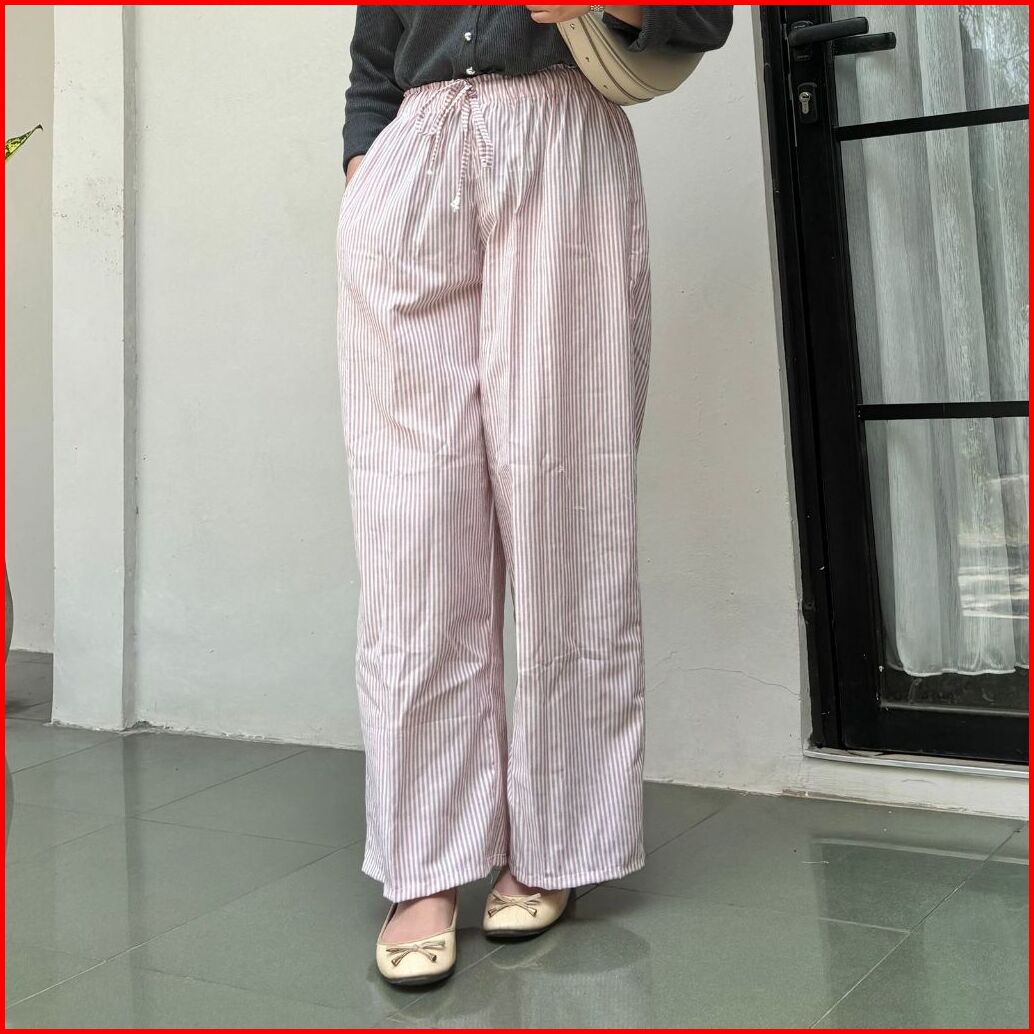 Neyna Pants Celana Cotton Premium Stripe Pants Celana Wanita Casual Katun Stripes Everyday Pants