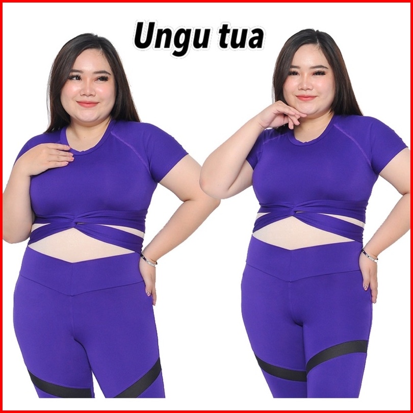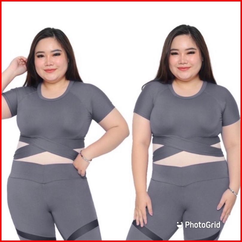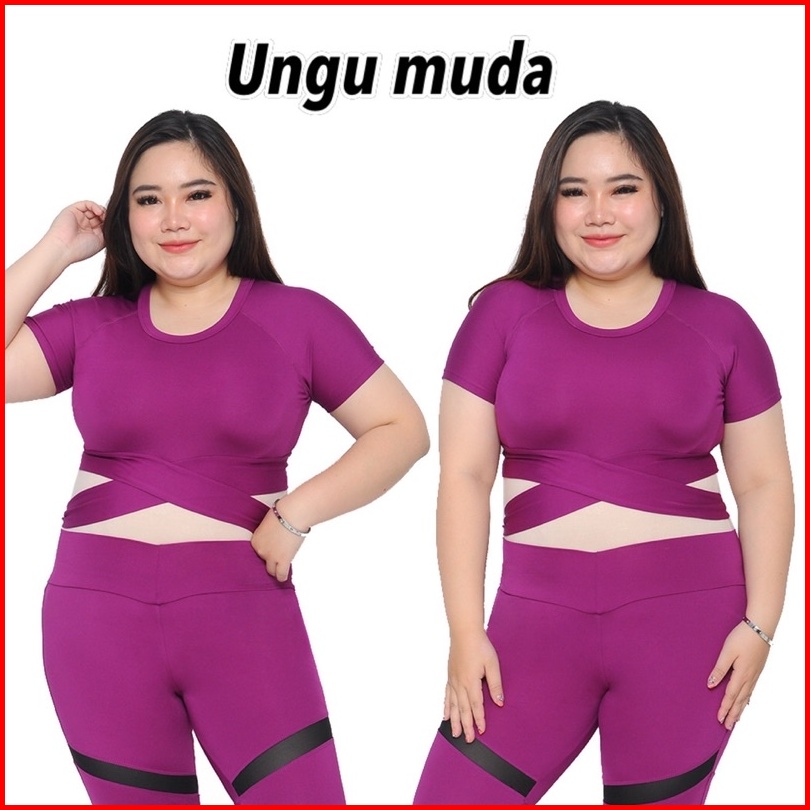 Atasan Senam Aerobik Zumba Yoga Gym Fitness Model Jumbo Crop Silang Pendek