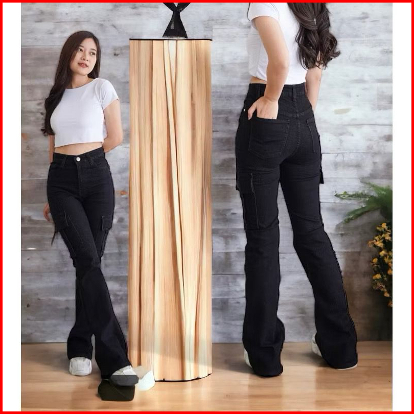 Celana Hw Cutbray Jeans Cargo Wanita-celama Jeans Wanita-kargo Cutbray Jeans Highwaist Streetch Wanita 27-38