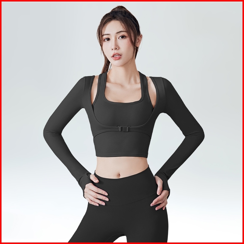 Baju Crop Lengan Panjang Olahraga Wanita Dengan Bra Pengait Depan Yoga Gym Senam Fitnes Atasan Kaos Long Sleeve Sport Ce
