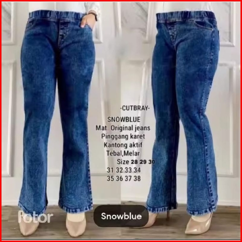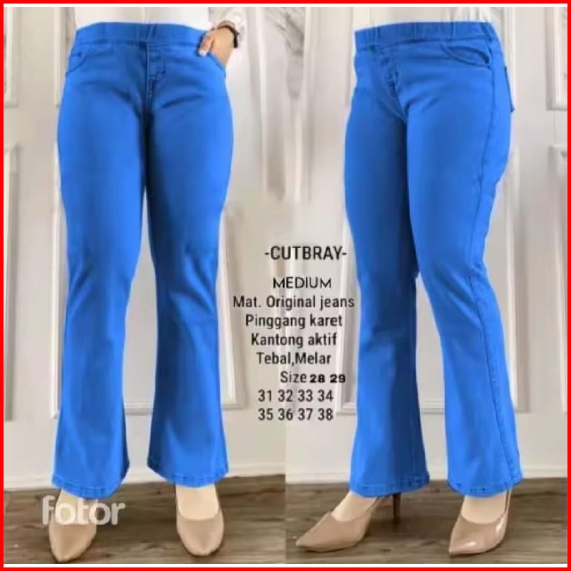 Celana Cutbray Jeans Wanita Pinggang Full Karet Terlaris