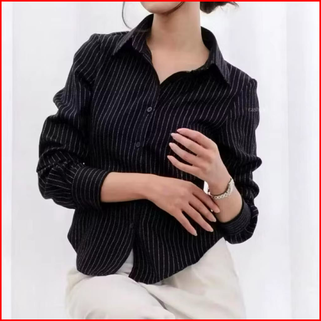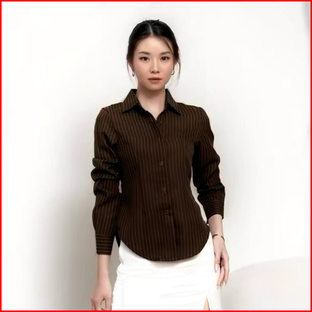 Luna Stripe Kemeja Wanita Lengan Panjang Salur Slimfit Semiwoll