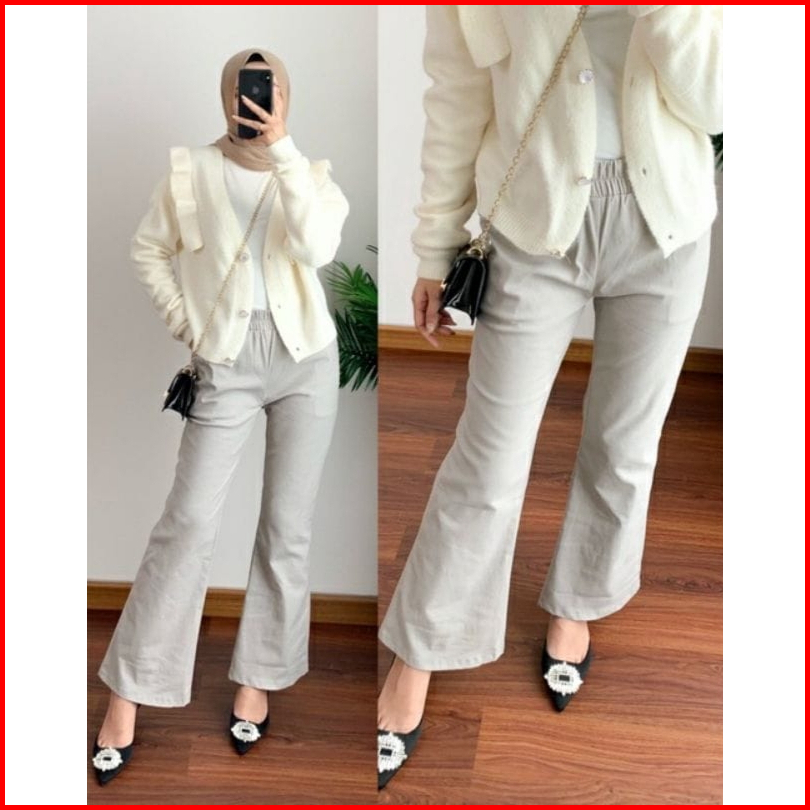Celana Cutbray Basic Pants Twill Combet Premium 2023 Pinggang Full Karet Strech Catton Twill Melar Panjang Polos Wanita
