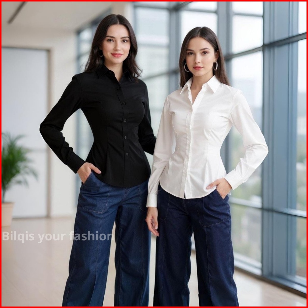 Chill Shirt Kemeja Kerja Putih Polos Interview Wawancara Ospek Wanita Lengan Panjang Fitted