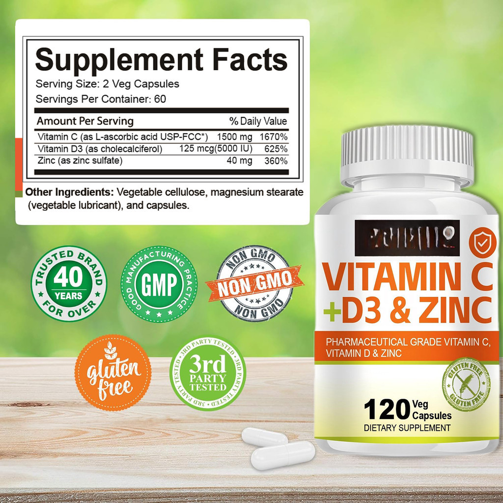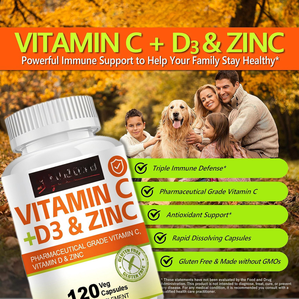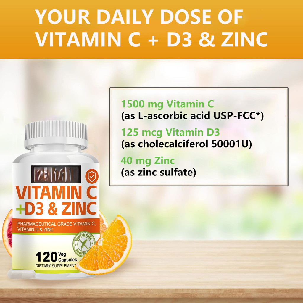 KIRKLAND Vitamin C + D3 and Zinc Triple Action Supplement for Nervous and Immune System Health