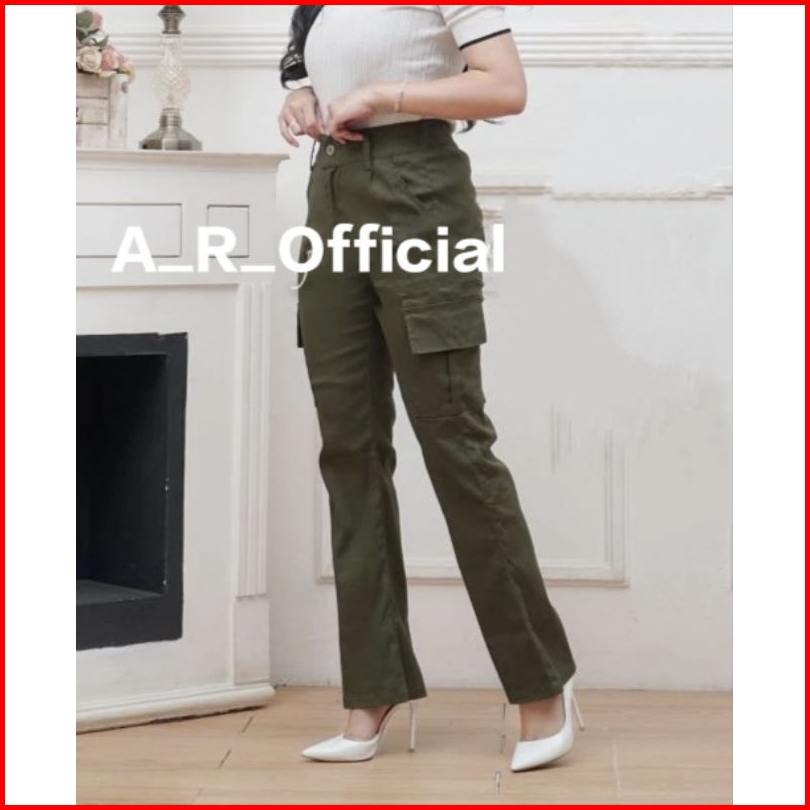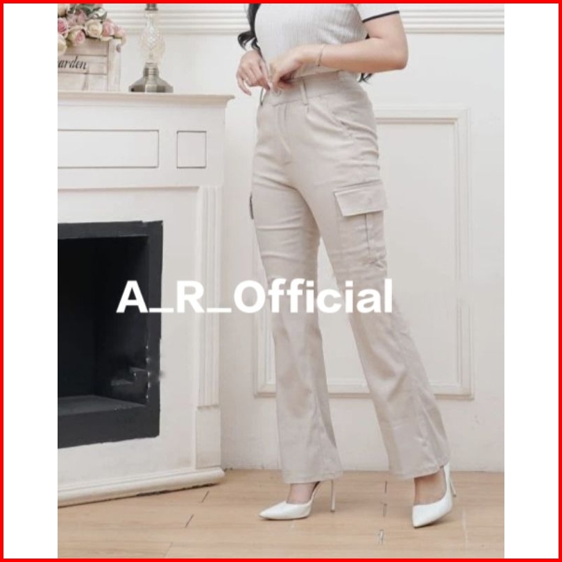 Celana Cutbray Cargo Wanita Highwaist Bahan Stretch