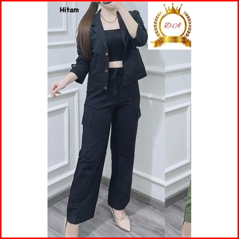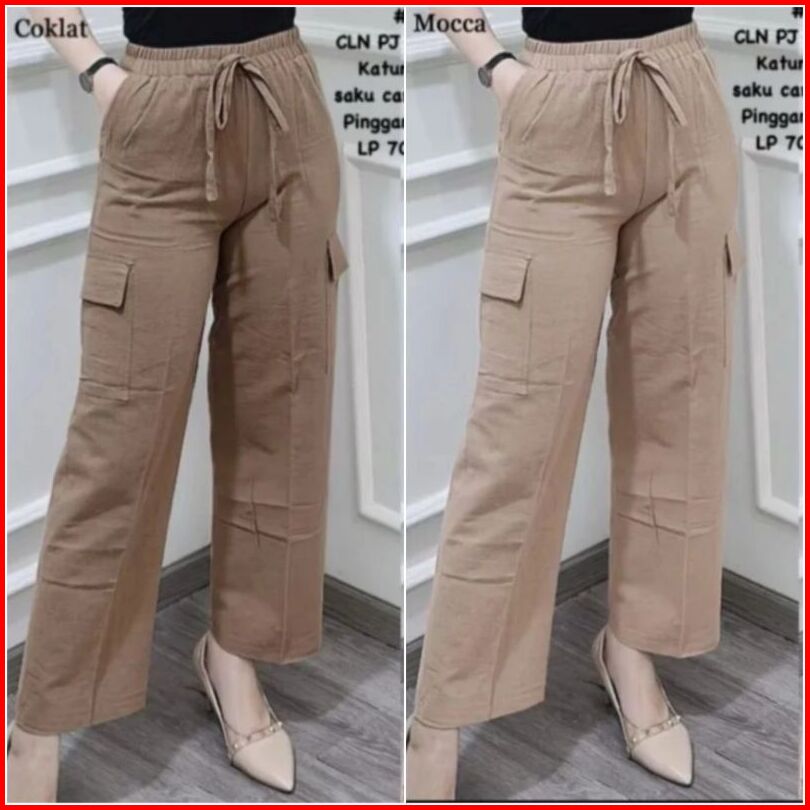 Celana Kulot Cargo Wanita Twill Combed Melar Halus Lembut