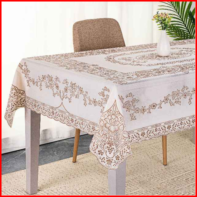 Taplak Meja Tamu Pvc Premium 137x183 Cm Tahan Air Motif Bunga Cantik Table Cover Alas Meja Makan D-e
