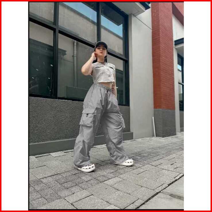 Celana Cargo Wanita Highwaist Loose Pants Trouser Korean Style