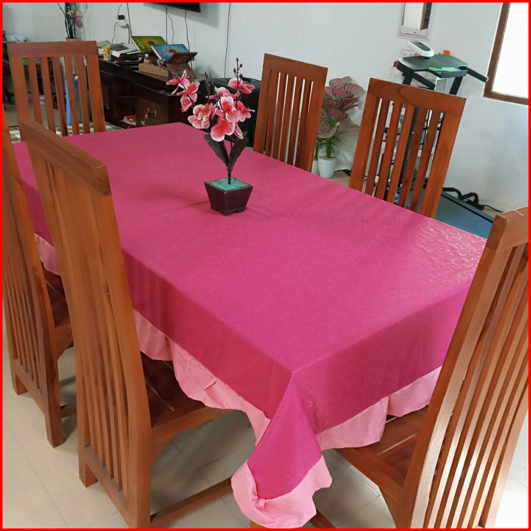Taplak Meja Makan Model Rumbai Persegi Panjang Kain Katun Polos Embos 140x220cm Dekorasi Perlengkapan Rumah