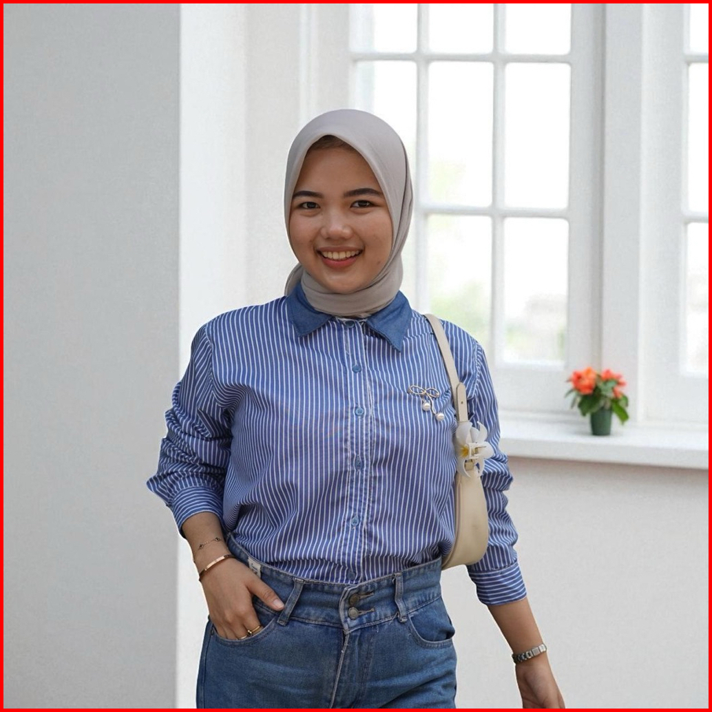 Girlfashionstory Original Demica Kemeja Katun Kombinasi Denim