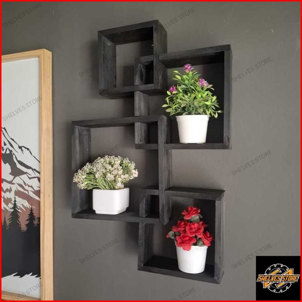 Shelv Rak Dinding Minimalis Segi Empat Kotak 4 Pcs 1 Set Ukuran Medium