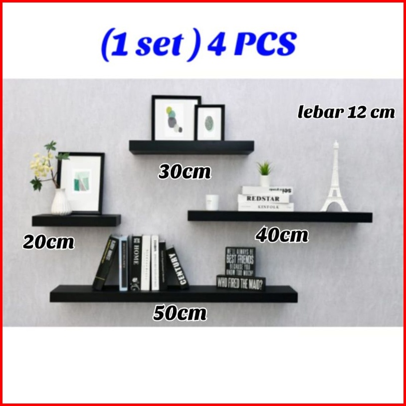 Promo Rak Dinding Minimalis 1 Set 4 Pcs Panjang 50.40.30.20 Cn